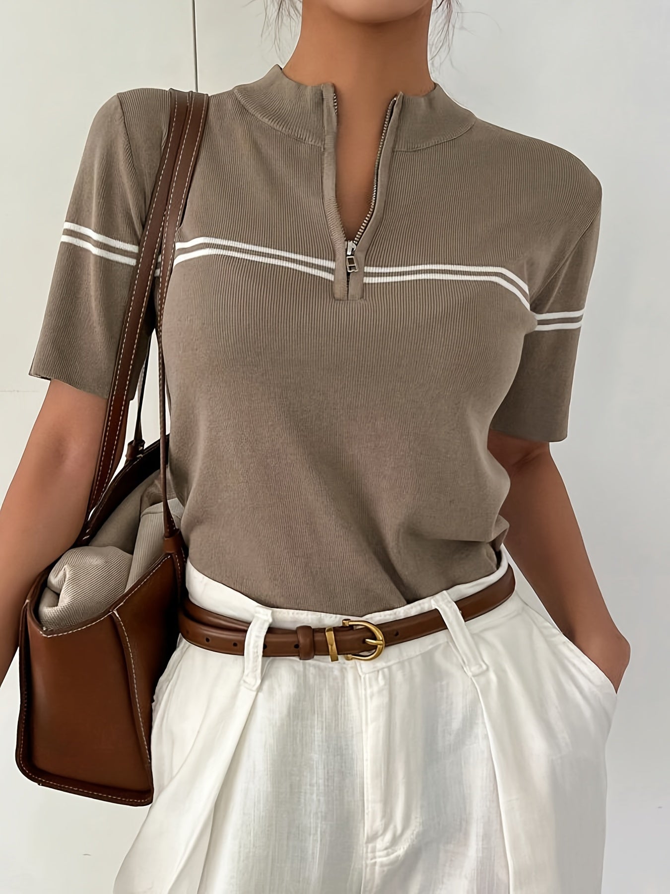 Elegance Meets Everyday Comfort: Erin Striped Zipper Sweater